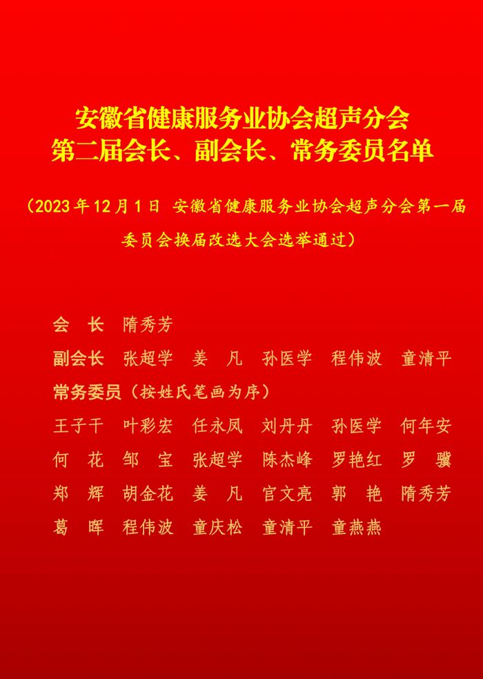 △安徽省健康服務(wù)業(yè)協(xié)會超聲分會第二屆會長、副會長、常務(wù)委員名單