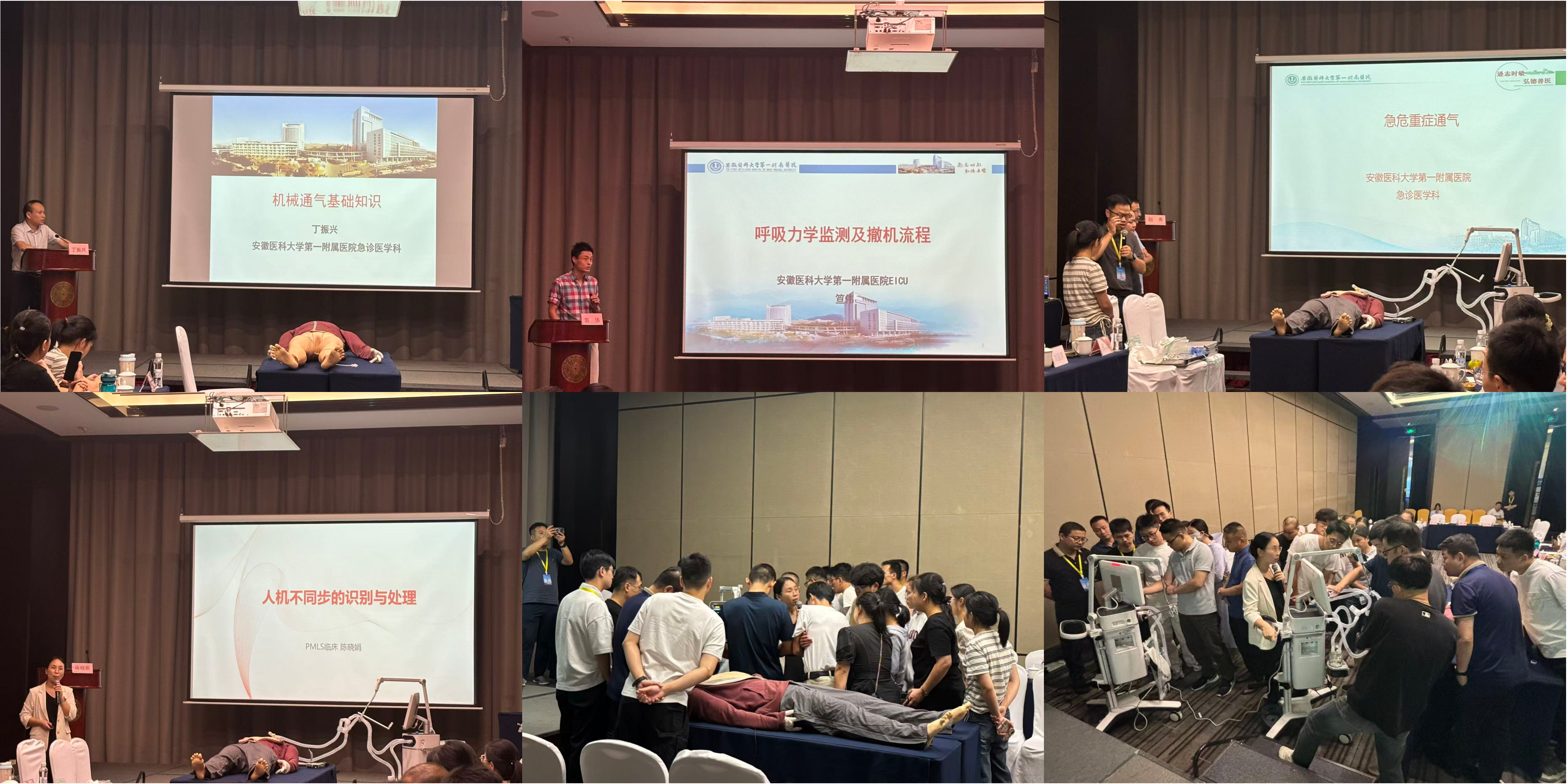 “氧療與機械通氣培訓(xùn)”分會場中,安徽醫(yī)科大學(xué)第一附屬醫(yī)院丁振興教授首先就《呼吸力學(xué)與機械通氣》進行了系統(tǒng)講解,為學(xué)員們奠定了堅實的理論基礎(chǔ)。隨后,安徽醫(yī)科大學(xué)第一附屬醫(yī)院笪偉教授深入闡述了《通氣模式與呼吸機撤離優(yōu)化策略》,對臨床常見通氣模式的選擇和撤機流程的精細化管理的分享引起了與會者的熱烈討論。安徽醫(yī)科大學(xué)第一附屬醫(yī)院趙勇教授帶來了《急危重癥通氣策略實戰(zhàn)與應(yīng)用》,通過豐富的臨床案例,生動講解了如何在復(fù)雜危重情況下制定個體化的通氣方案。最后,邁瑞公司陳曉娟臨床高級講師就臨床常見的難點——《人機對抗的識別與處理》進行了專業(yè)講解與實操演示,其貼近臨床的解決方案為醫(yī)護人員提供了寶貴的實用技術(shù)參考。