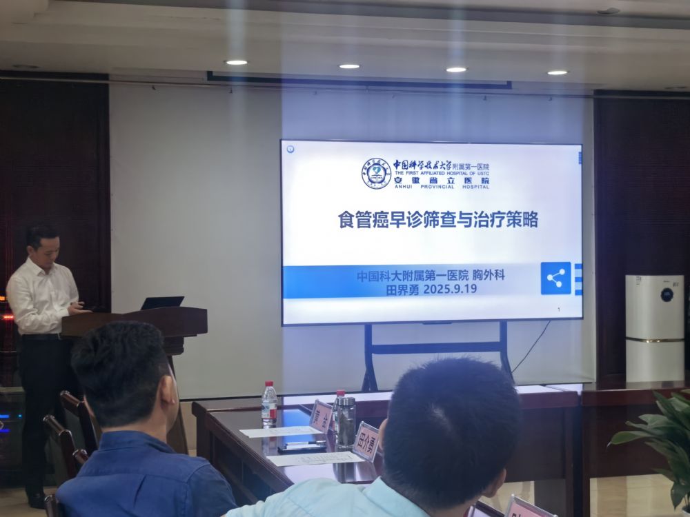 揭牌儀式后,夏永偉院長(zhǎng)就《當(dāng)涂縣腫瘤行動(dòng)方案》進(jìn)行了專題匯報(bào),勾勒出未來(lái)工作的清晰藍(lán)圖。在緊隨其后的學(xué)術(shù)交流環(huán)節(jié),會(huì)議內(nèi)容精彩紛呈。安徽省腫瘤醫(yī)院的田介勇、葉磊、黃金三位教授分別圍繞《食管癌早診篩查與治療策略》、《“小探頭,大作用”-超聲在腫瘤防治中的應(yīng)用》及《淺談消化內(nèi)鏡在食管惡性腫瘤診治中的應(yīng)用》作了前沿而實(shí)用的專題報(bào)告。馬鞍山市人民醫(yī)院崔方博主任則對(duì)區(qū)域腫瘤質(zhì)控工作進(jìn)行了總結(jié)并提出了明確要求。此外,當(dāng)涂縣人民醫(yī)院徐圓醫(yī)師分享的《肺癌MDT全流程病例》,生動(dòng)展示了多學(xué)科協(xié)作(MDT)診療模式在臨床實(shí)踐中的卓越價(jià)值。