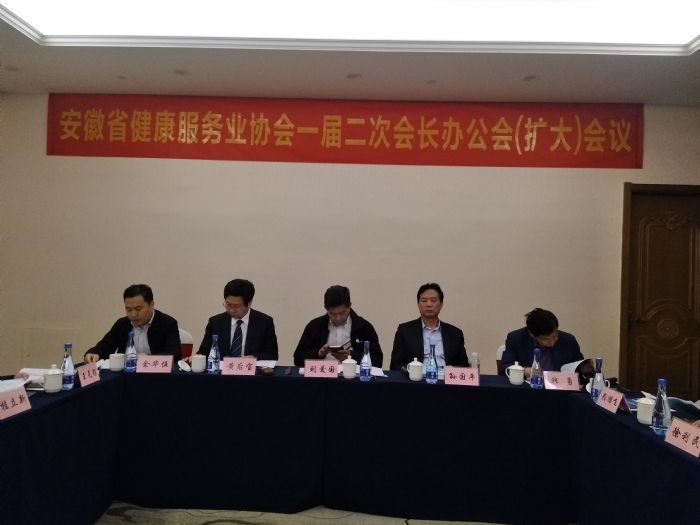 2018年10月20日下午,安徽省健康服務(wù)業(yè)協(xié)會一屆二次會長辦公會(擴(kuò)大)會議在合肥召開。協(xié)會會長劉愛國,副會長、安徽醫(yī)科大學(xué)第一附屬醫(yī)院副院長孫國平,副會長、皖南醫(yī)學(xué)院弋磯山醫(yī)院副院長黃后寶,副會長、安徽醫(yī)科大學(xué)附屬口腔醫(yī)院副院長王元銀,副會長、六安市人民醫(yī)院副院長韓勇,副會長、蕪湖市第二人民醫(yī)院副院長徐利民,副會長、太和縣中醫(yī)院院長顏鵬飛,副會長、安徽林蘭藥業(yè)有限公司董事長桂立新,副會長兼秘書長余華伍,副會長單位代表、中科大附一院(省立醫(yī)院)南區(qū)副院長周浩泉,副會長單位代表、安徽省胸科醫(yī)院體檢中心主任湯莉,副會長單位代表、阜陽市人民醫(yī)院辦公室主任錢潁、副會長單位代表、蚌埠醫(yī)學(xué)院第一附屬醫(yī)院辦公室副主任張青黃,副會長單位代表、皖南醫(yī)學(xué)院第二附屬醫(yī)院體檢中心主任朱金濤,副會長單位代表、滁州市第一人民醫(yī)院科教科科長宣翠香,副會長單位代表、安徽省皖南康復(fù)醫(yī)院健康管理中心副主任張萍,副會長單位代表、合肥金域醫(yī)學(xué)檢驗實驗室有限公司副總經(jīng)理常友、秘書處副秘書長兼學(xué)術(shù)交流部主任于澍民等秘書處工作人員共計20余人參加會議。會議由劉愛國會長主持。