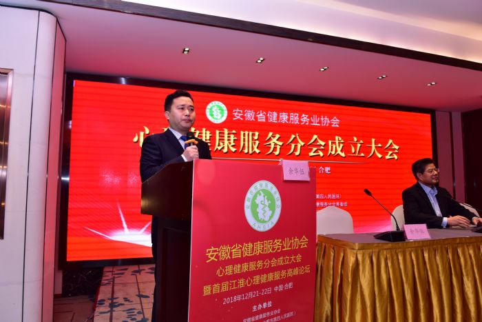 2018年12月21日-22日,由安徽省健康服務業(yè)協(xié)會和安徽省精神衛(wèi)生中心(合肥市第四人民醫(yī)院)主辦,安徽省健康服務業(yè)協(xié)會心理健康服務分會籌備組和安徽省云時代健康管理有限公司承辦,安徽心港心理服務有限公司協(xié)辦的安徽省健康服務業(yè)協(xié)會心理健康服務分會成立大會暨首屆江淮心理健康服務高峰論壇在合肥順利召開。安徽省健康服務業(yè)協(xié)會會長劉愛國,安徽省健康服務業(yè)協(xié)會副會長兼秘書長余華伍,心理健康服務分會籌備組組長、安徽省精神衛(wèi)生中心(合肥市第四人民醫(yī)院)學術(shù)顧問、主任醫(yī)師、安徽醫(yī)科大學碩士生導師李曉駟教授等出席大會。來自全省各級醫(yī)院精神科、心理治療專家學者及業(yè)務骨干、全省各地市高校心理教育和心理咨詢專家、第三方心理咨詢機構(gòu)負責人及技術(shù)人員共計150余人出席大會。大會由安徽省健康服務業(yè)協(xié)會副會長兼秘書長余華伍主持。