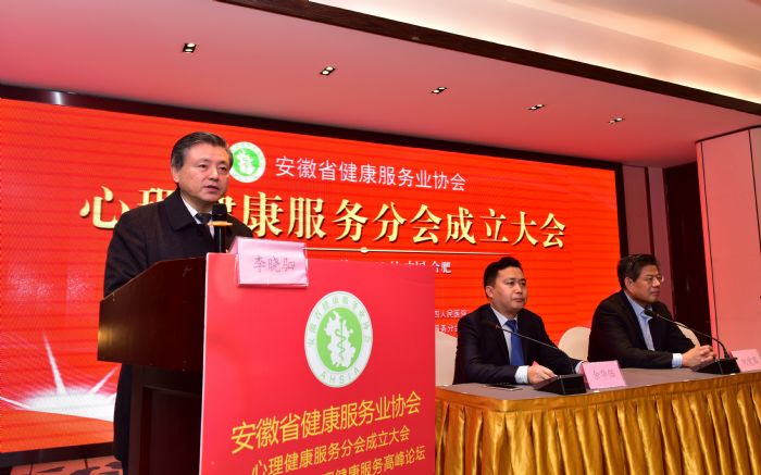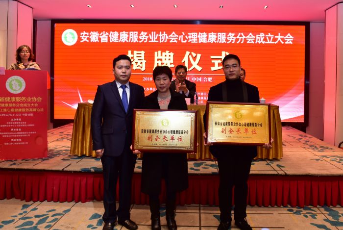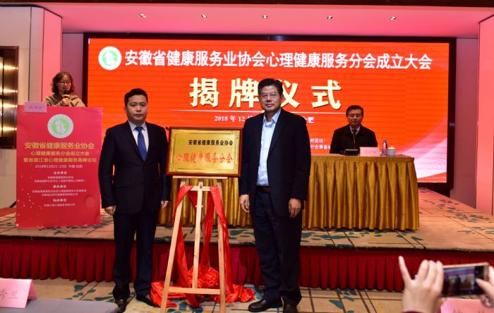 安徽省健康服務業(yè)協(xié)會會長劉愛國和協(xié)會副會長兼秘書長余華伍共同為心理健康服務分會揭牌,并向新當選分會會長李曉駟授牌。分會掛靠安徽省精神衛(wèi)生中心(合肥市第四人民醫(yī)院)。