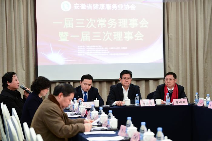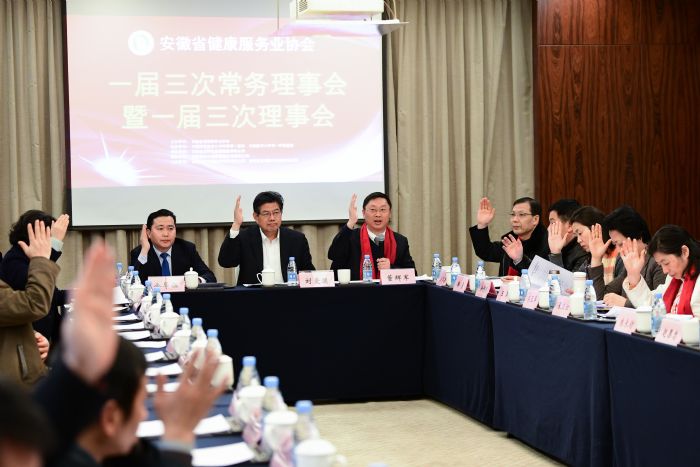 2019年1月11日,安徽省健康服務(wù)業(yè)協(xié)會(huì)一屆三次常務(wù)理事會(huì)暨一屆三次理事會(huì)在合肥市召開,協(xié)會(huì)輪值會(huì)長、中科大附一院(安徽省立醫(yī)院)副院長兼南區(qū)院長董輝軍教授主持會(huì)議,協(xié)會(huì)會(huì)長、副會(huì)長、秘書長、副秘書長、常務(wù)理事、理事共40余人參加會(huì)議。