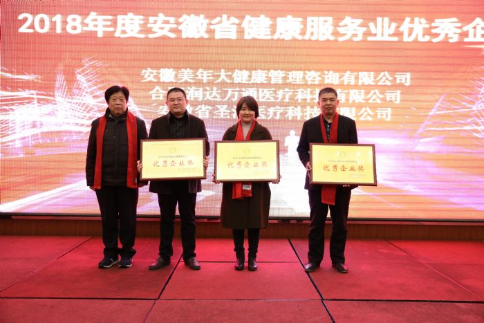 在新春聯(lián)誼會上,協(xié)會授予安徽省第二人民醫(yī)院、安徽省胸科醫(yī)院、壽縣中醫(yī)院等20家單位為“安徽省健康服務(wù)業(yè)協(xié)會2018年度先進(jìn)單位”稱號,授予安徽美年大健康管理咨詢有限公司、合肥潤達(dá)萬通醫(yī)療科技有限公司、安徽省圣潔醫(yī)療科技有限公司等3家企業(yè)為“安徽省健康服務(wù)業(yè)2018年度優(yōu)秀企業(yè)獎”稱號,授予心血管健康管理分會和婦女健康管理分會為“安徽省健康服務(wù)業(yè)協(xié)會2018年度先進(jìn)分會”稱號。