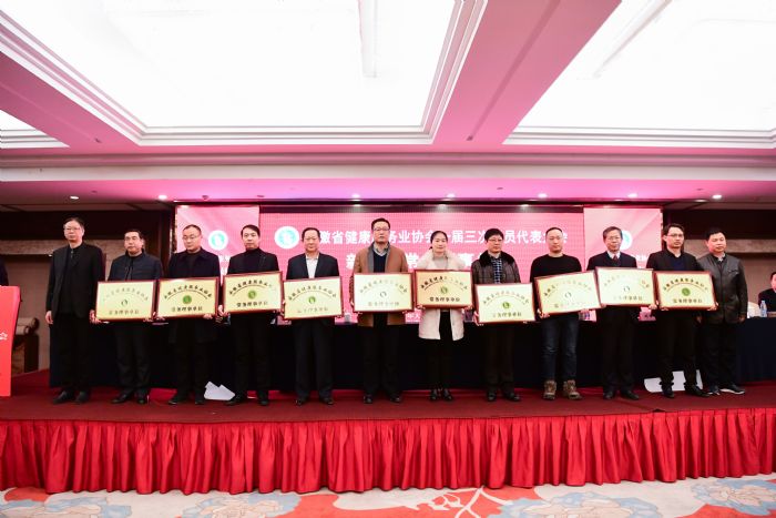協(xié)會(huì)顧問(wèn)、安徽省食品藥品監(jiān)督管理局原局長(zhǎng)劉自林和協(xié)會(huì)副會(huì)長(zhǎng)兼秘書(shū)長(zhǎng)余華伍為團(tuán)體會(huì)員單位授牌