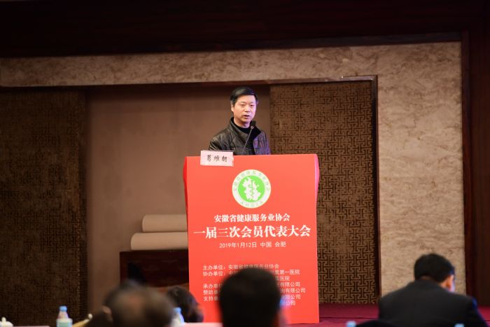協(xié)會(huì)會(huì)長(zhǎng)劉愛(ài)國(guó)教授致歡迎辭:協(xié)會(huì)成立2年多時(shí)間,在省衛(wèi)健委、省民政廳、省科協(xié)等部門(mén)的關(guān)心指導(dǎo)下,在各會(huì)員單位的大力支持下,安徽省健康服務(wù)業(yè)協(xié)會(huì)創(chuàng)新開(kāi)展工作,大膽作為,協(xié)會(huì)各項(xiàng)工作取得預(yù)期的成果。在2019年新年伊始,新春佳節(jié)即將到來(lái)的重要時(shí)刻,我們隆重召開(kāi)安徽省健康服務(wù)業(yè)協(xié)會(huì)2018年度會(huì)員代表大會(huì);總結(jié)2018年度協(xié)會(huì)工作,謀劃2019年度協(xié)會(huì)工作計(jì)劃,全面推進(jìn)協(xié)會(huì)工作上臺(tái)階,打造我健康服務(wù)業(yè)融合創(chuàng)新協(xié)作的平臺(tái),加快建設(shè)五大發(fā)展美好安徽。