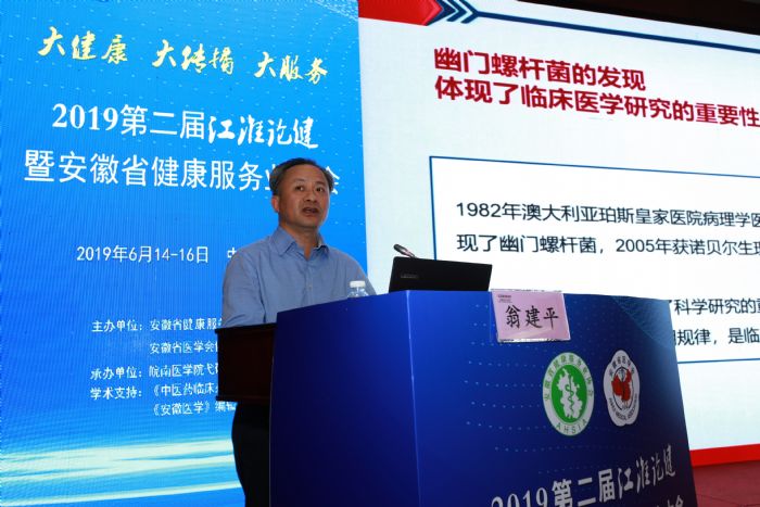 長江學者、中國科學技術(shù)大學臨床醫(yī)學院執(zhí)行院長、中國科學技術(shù)大學附屬第一醫(yī)院副院長翁建平教授作報告