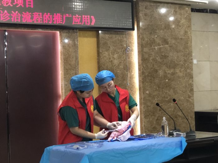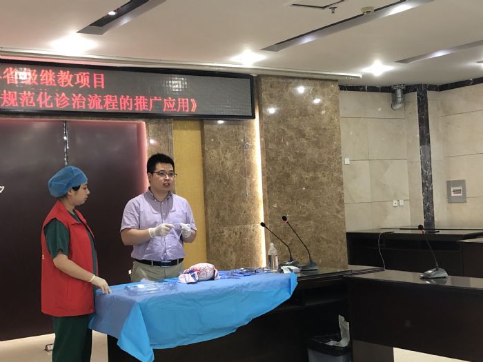 本次項(xiàng)目推廣有醫(yī)生、護(hù)士及助產(chǎn)士等共11人組成。會議先由楊主任先結(jié)合我省基本情況,從產(chǎn)科出血的病因、識別及預(yù)警、以及產(chǎn)科出血的規(guī)范化診治的技術(shù)和流程改進(jìn),同與會代表作了詳細(xì)分享。隨后,產(chǎn)科危重癥搶救小組現(xiàn)場進(jìn)行產(chǎn)房產(chǎn)后出血應(yīng)急演練,生動完整地呈現(xiàn)了產(chǎn)房產(chǎn)后出血的救治過程。最后,危重?fù)尵刃〗M成員還通過子宮模型手把手演示了子宮按摩、軟產(chǎn)道探查、子宮捆綁、球囊放置和子宮動脈結(jié)扎等常用止血操作。
