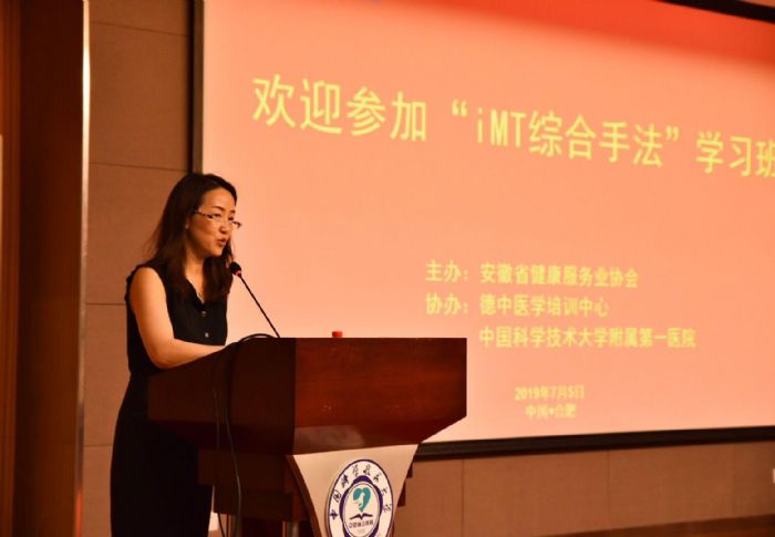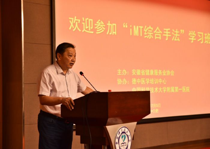由安徽省健康服務(wù)業(yè)協(xié)會(huì)主辦,德中醫(yī)學(xué)培訓(xùn)中心與中國科學(xué)技術(shù)大學(xué)附屬第一醫(yī)院(安徽省立醫(yī)院)康復(fù)醫(yī)學(xué)科共同承辦的iMT綜合手法治療國際推廣班于2019年7月5日-7日在中國科學(xué)技術(shù)大學(xué)附屬第一醫(yī)院(安徽省立醫(yī)院)南區(qū)學(xué)術(shù)交流中心第三會(huì)議室舉辦,來自省內(nèi)外的24名學(xué)員參加本次學(xué)習(xí)班。本次開班儀式由安徽省健康服務(wù)業(yè)協(xié)會(huì)副秘書長于澍民先生代表主辦方進(jìn)行開班寄語,科大附屬第一醫(yī)院(安徽省立醫(yī)院)南區(qū)副院長周浩泉教授對(duì)來自德國的iMT高級(jí)講師Thomas Brucha先生、德國國家康復(fù)治療師郜志英女士及來自全國各地的學(xué)員致歡迎詞,熱烈的歡迎師生來中科大附一院學(xué)習(xí)國際先進(jìn)的康復(fù)治療新技術(shù)。中科大附一院康復(fù)治療中心吳鳴主任主持。參加開班儀式的特邀嘉賓有德國神經(jīng)康復(fù)協(xié)會(huì)主席Thomas Mokrusch教授、德中醫(yī)學(xué)培訓(xùn)中心主任李巍博士、中科大附一院康復(fù)醫(yī)學(xué)科倪朝民教授。本次學(xué)習(xí)班為我院康復(fù)醫(yī)學(xué)學(xué)術(shù)周活動(dòng)之一。