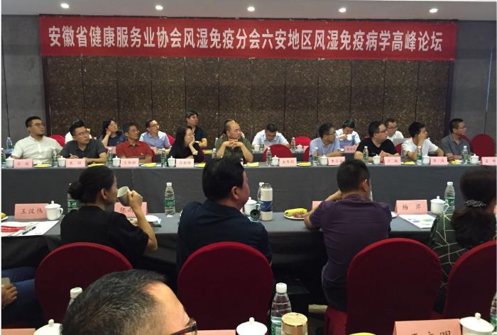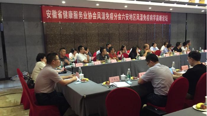 2019年8月3-4日,安徽省健康服務(wù)業(yè)協(xié)會風(fēng)濕免疫分會六安地區(qū)風(fēng)濕免疫病學(xué)高峰論壇在六安藍(lán)溪興茂順利召開。本次會議由安徽省健康服務(wù)業(yè)協(xié)會主辦,安徽省健康服務(wù)業(yè)協(xié)會風(fēng)濕免疫分會承辦,合肥樂朗醫(yī)藥科技有限公司協(xié)辦。約43名來自省內(nèi)各級醫(yī)院的風(fēng)濕病醫(yī)生、護(hù)士、以及健康服務(wù)相關(guān)企業(yè)代表參會。