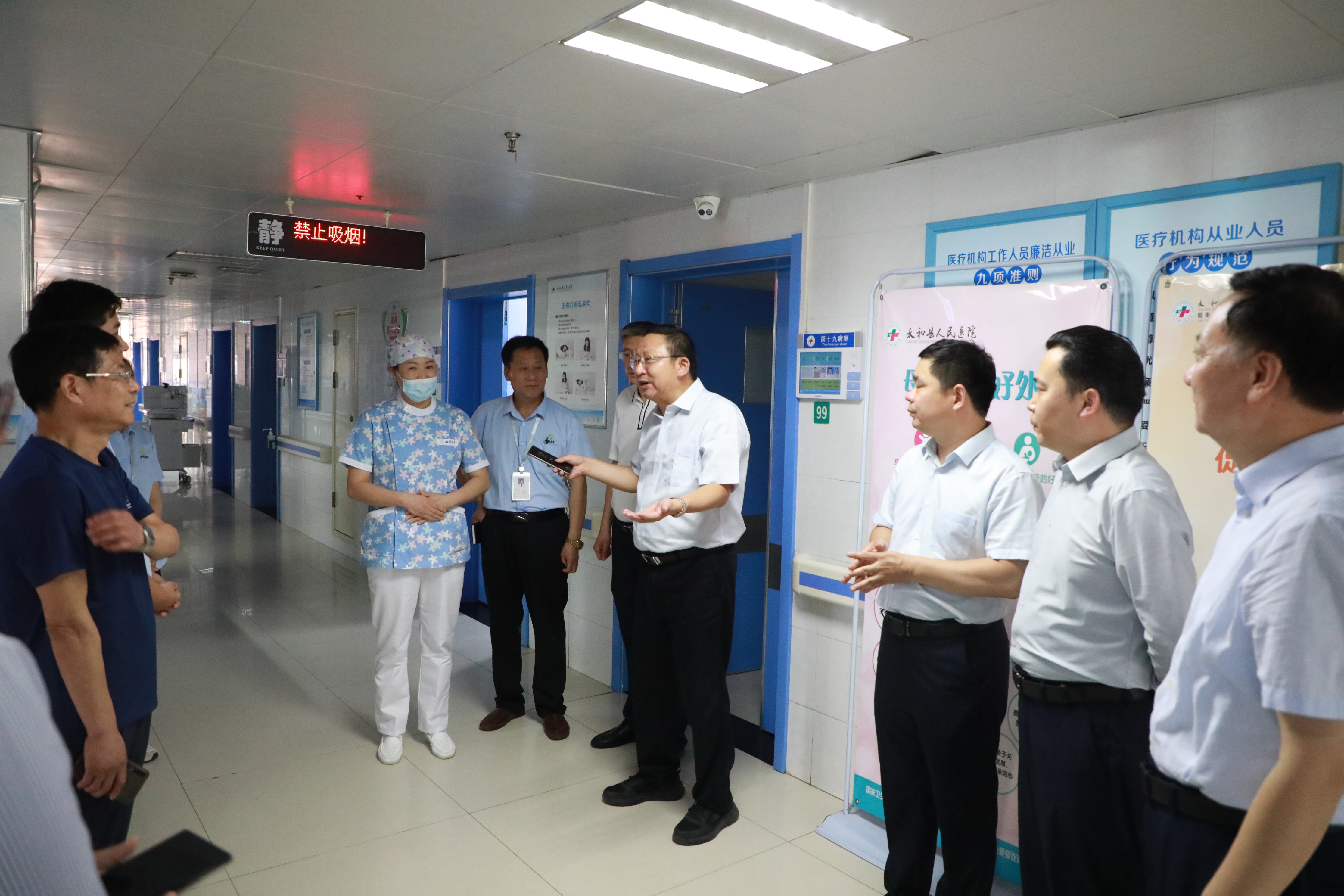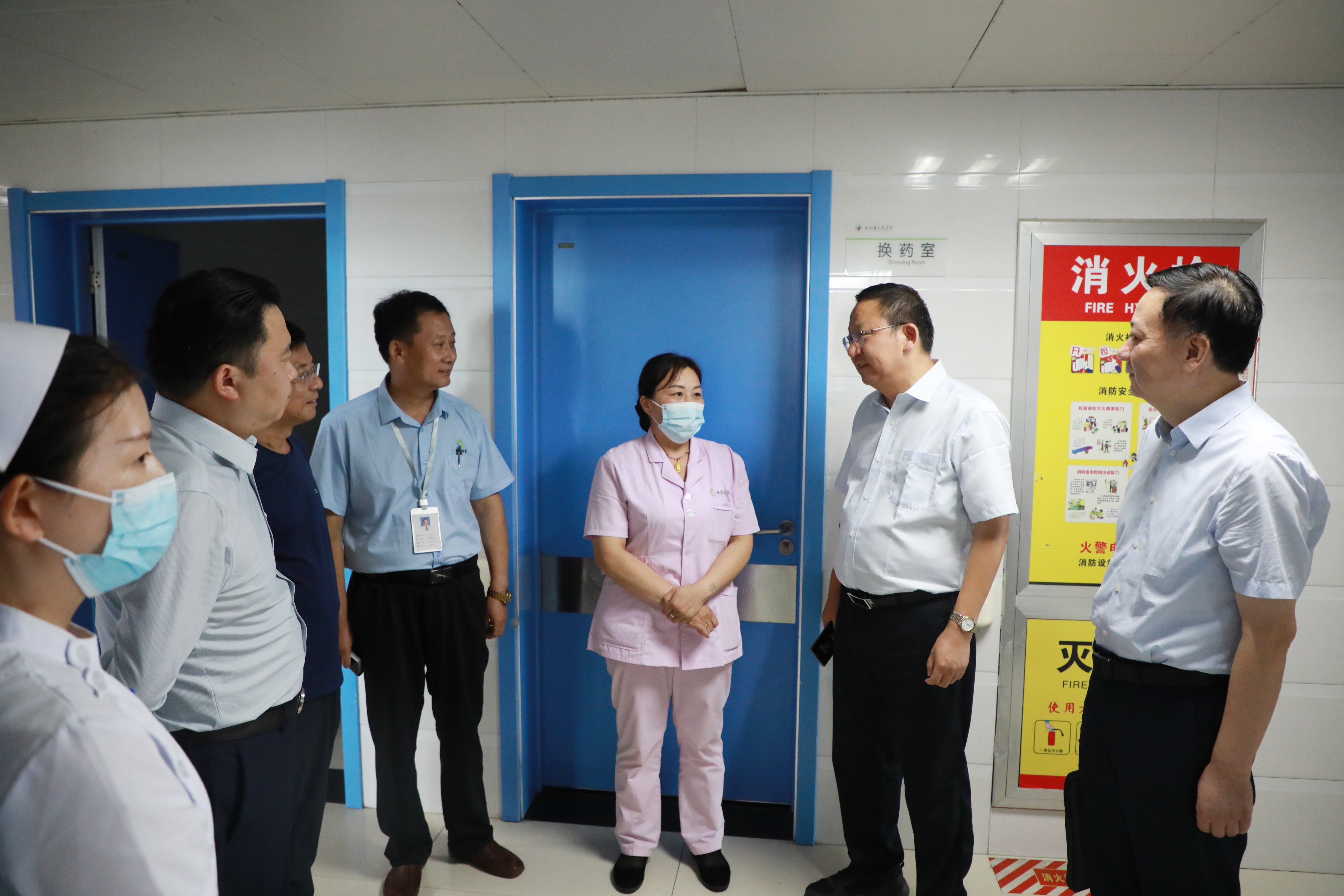 為深入了解我省醫(yī)療護理員試點推進工作,8月3日,安徽省健康服務業(yè)協(xié)會會長、省衛(wèi)生健康委員會原副主任、一級巡視員杜昌智,副會長、安徽醫(yī)科大學第二附屬醫(yī)院黨委書記周典,副會長兼秘書長余華伍,駐會副會長韓勇,護理事業(yè)部主任尹建軍一行赴太和縣人民醫(yī)院開展專題調(diào)研。太和縣人民醫(yī)院黨委書記祝振華,協(xié)會副會長、黨委副書記、院長趙曙光,護理部、總務科及相關(guān)科室負責人陪同調(diào)研。