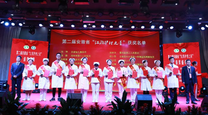 安徽省護(hù)理學(xué)會(huì)副理事長(zhǎng)兼秘書長(zhǎng)李志菊和阜陽(yáng)市人民醫(yī)院副院長(zhǎng)朱振華共同為獲獎(jiǎng)人員頒獎(jiǎng)
