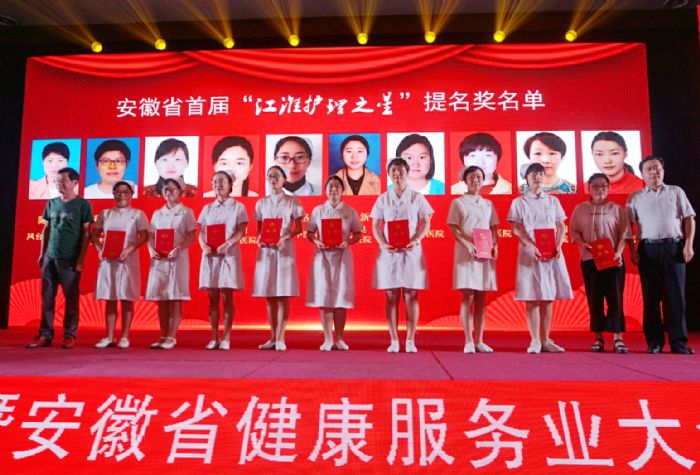安徽省健康服務(wù)業(yè)協(xié)會會長劉愛國、安徽省護(hù)理學(xué)會理事長武義華共同為獲獎(jiǎng)人頒發(fā)獎(jiǎng)杯和證書