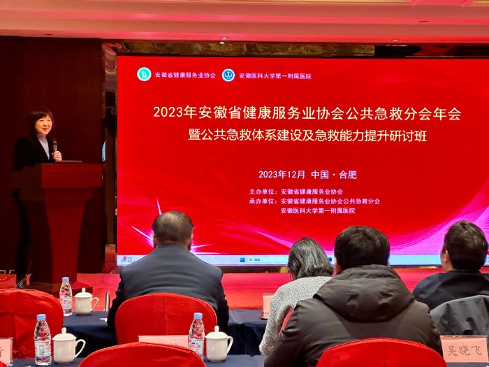 12月15-16日,2023年度安徽省健康服務(wù)業(yè)協(xié)會公共急救分會年會暨“公共急救體系建設(shè)及急救能力提升研討班”在合肥順利召開。公共急救分會會長、安徽醫(yī)科大學(xué)第一附屬醫(yī)院急診科俞鳳主任主持了大會開幕式。安徽省健康服務(wù)業(yè)協(xié)會副會長兼秘書長余華伍、安徽省醫(yī)學(xué)會急診醫(yī)學(xué)分會候任主任委員王振杰、安徽醫(yī)科大學(xué)第一附屬醫(yī)院北區(qū)院長張泓出席大會并分別致辭,來自全省各市、部分縣(區(qū))醫(yī)療機構(gòu)、高等院校專家學(xué)者和衛(wèi)生健康相關(guān)服務(wù)產(chǎn)業(yè)及其上下游單位等共200余人參加了會議。