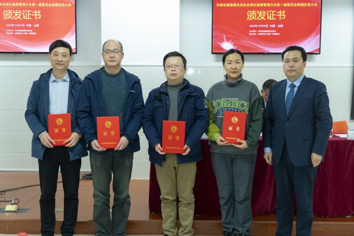 2023年12月29日,安徽省健康服務(wù)業(yè)協(xié)會(huì)消化健康管理分會(huì)第一屆委員會(huì)換屆改選大會(huì)在合肥舉行。省健康服務(wù)業(yè)協(xié)會(huì)會(huì)長、省衛(wèi)生健康委原副主任、一級巡視員杜昌智,省健康服務(wù)業(yè)協(xié)會(huì)副會(huì)長兼秘書長余華伍,省健康服務(wù)業(yè)協(xié)會(huì)副秘書長于澍民出席會(huì)議,來自全省各級醫(yī)院的消化科專家及業(yè)務(wù)骨干100余人參加了此次大會(huì)。會(huì)議由協(xié)會(huì)副會(huì)長兼秘書長余華伍主持。