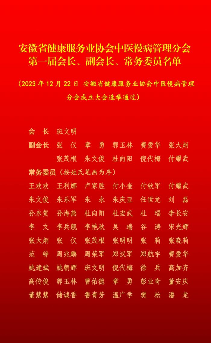 △安徽省健康服務業(yè)協(xié)會中醫(yī)慢病管理分會第一屆會長、副會長、常務委員名單