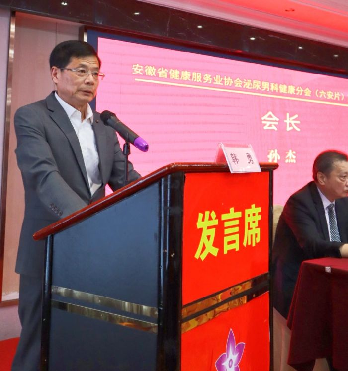 省健康服務(wù)業(yè)協(xié)會副會長兼泌尿男科健康分會會長、皖南醫(yī)學(xué)院第二附屬醫(yī)院院長黃后寶,協(xié)會駐會副會長韓勇,協(xié)會副秘書長于澍民、協(xié)會副秘書長兼辦公室主任余鑫,協(xié)會學(xué)術(shù)交流部主任孟楠,金安區(qū)衛(wèi)健委工委主任尹君、六安市醫(yī)學(xué)會泌尿外科分會主任委員徐鵬程、六安市第四人民醫(yī)院黨委書記李安國、副院長陳昌群、院長助理李開明、醫(yī)務(wù)處處長劉玉兵等出席開幕式。會議由協(xié)會副會長兼秘書長余華伍主持。