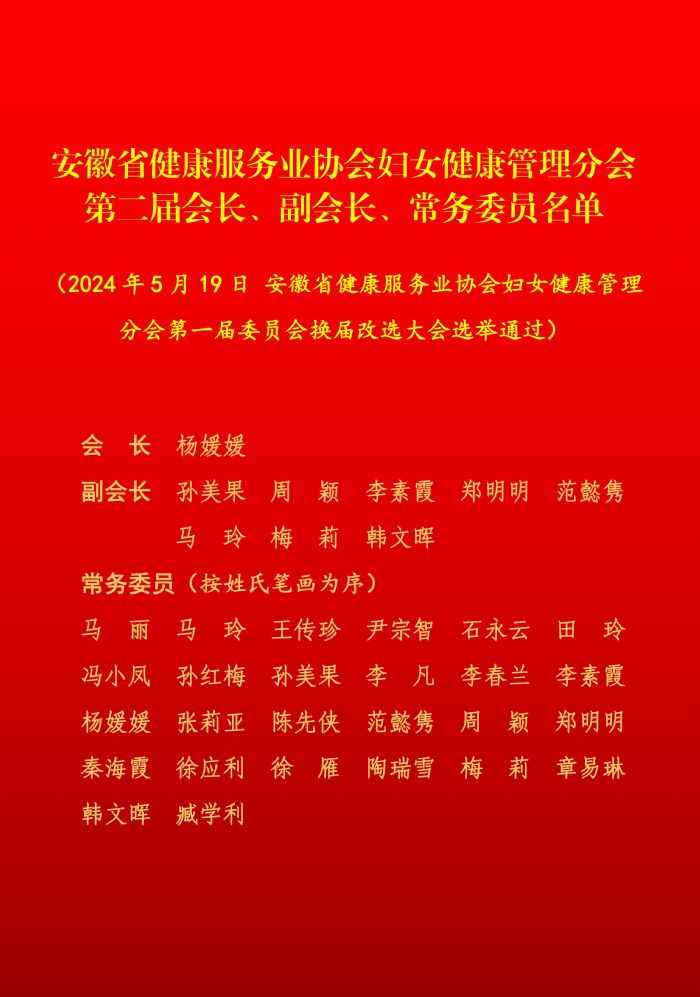 △安徽省健康服務業(yè)協(xié)會婦女健康管理分會第二屆會長、副會長、常務委員名單
