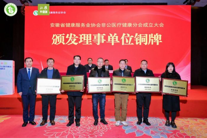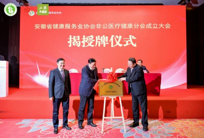 △協(xié)會(huì)會(huì)長(zhǎng)杜昌智,協(xié)會(huì)副會(huì)長(zhǎng)孫良業(yè)、趙曙光共同為非公醫(yī)療健康分會(huì)揭牌