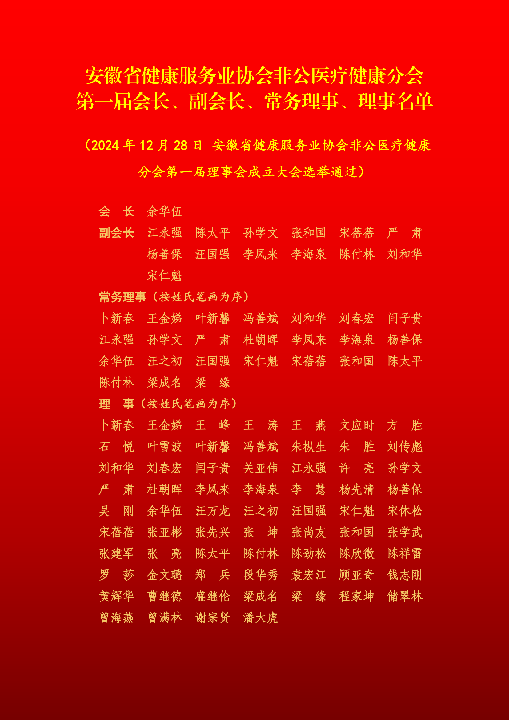 △安徽省健康服務(wù)業(yè)協(xié)會(huì)非公醫(yī)療健康分會(huì)第一屆會(huì)長(zhǎng)、副會(huì)長(zhǎng)、常務(wù)理事、理事名單 |