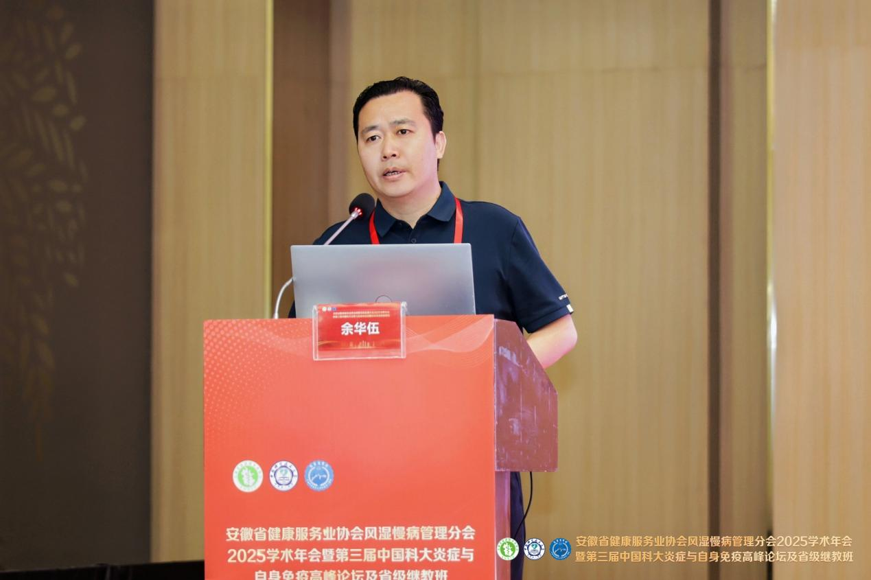 會(huì)議開幕式,安徽省健康服務(wù)業(yè)協(xié)會(huì)副會(huì)長(zhǎng)兼秘書長(zhǎng)余華伍代表主辦單位致辭,對(duì)風(fēng)濕慢病管理分會(huì)近三年來(lái)在推動(dòng)全省風(fēng)濕慢病規(guī)范化診療、學(xué)術(shù)交流合作及人才培養(yǎng)等方面取得的顯著成效給予高度肯定,分會(huì)為提升區(qū)域風(fēng)濕免疫疾病防治水平作出了積極貢獻(xiàn)。