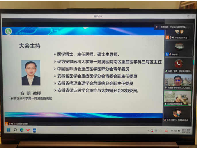 2025年3月4日,由安徽省健康服務(wù)業(yè)協(xié)會主辦的“重癥跨院交流會”于騰訊會議平臺線上順利召開。本次會議聚焦重癥醫(yī)學(xué)領(lǐng)域的專業(yè)交流,以精準、高效的學(xué)術(shù)分享為特色,邀請了合肥市第二人民醫(yī)院與安徽省第二人民醫(yī)院重癥醫(yī)學(xué)科共同參與。