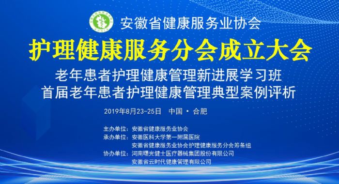 2019年8月23-25日,由安徽省健康服務(wù)業(yè)協(xié)會(huì)主辦,安徽醫(yī)科大學(xué)第一附屬醫(yī)院、安徽省健康服務(wù)業(yè)協(xié)會(huì)護(hù)理健康服務(wù)分會(huì)籌備組承辦,河南曙光健士醫(yī)療器械集團(tuán)股份有限公司、安徽省云時(shí)代健康管理有限公司協(xié)辦的安徽省健康服務(wù)業(yè)協(xié)會(huì)護(hù)理健康服務(wù)分會(huì)成立大會(huì)暨省級(jí)繼教項(xiàng)目“老年患者護(hù)理健康管理新進(jìn)展學(xué)習(xí)班”及“首屆老年患者護(hù)理健康管理典型案例評(píng)析”在合肥市順利召開。