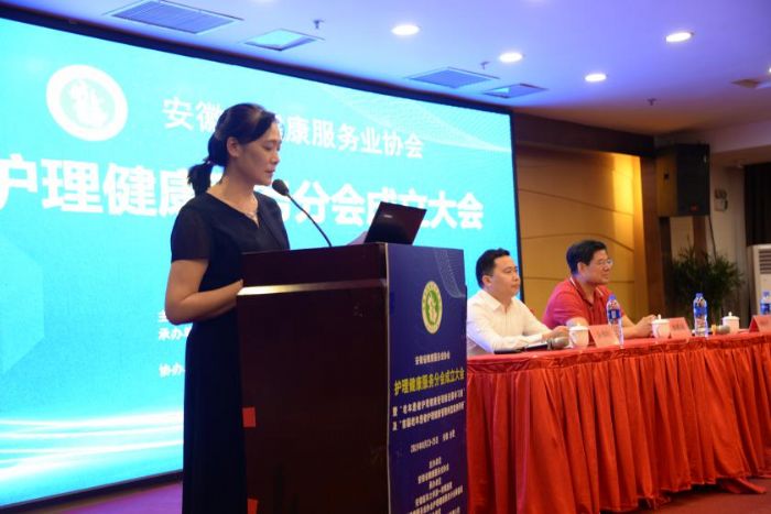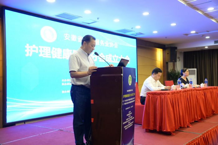 協(xié)會(huì)副秘書長(zhǎng)于澍民宣讀安徽省健康服務(wù)業(yè)協(xié)會(huì)護(hù)理健康服務(wù)分會(huì)成立批復(fù)函。