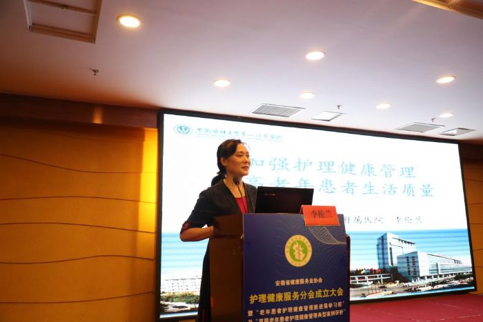 安徽醫(yī)科大學(xué)第一附屬醫(yī)院黨委書記金宗祥致詞,對(duì)分會(huì)的成立及李倫蘭處長(zhǎng)當(dāng)選為分會(huì)會(huì)長(zhǎng)表示祝賀。并針對(duì)護(hù)理學(xué)的發(fā)展及老年護(hù)理的現(xiàn)狀,護(hù)理健康服務(wù)的長(zhǎng)遠(yuǎn)規(guī)劃等作了高屋建瓴的講話。