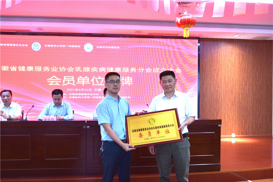 6月26日,安徽省健康服務(wù)業(yè)協(xié)會(huì)乳腺疾病健康服務(wù)分會(huì)成立大會(huì)暨2021濟(jì)民乳腺腫瘤論壇在安徽濟(jì)民腫瘤醫(yī)院召開。本次會(huì)議由安徽省健康服務(wù)業(yè)協(xié)會(huì)(以下簡稱協(xié)會(huì))主辦,安徽濟(jì)民腫瘤醫(yī)院、安徽醫(yī)科大學(xué)第一附屬醫(yī)院承辦。協(xié)會(huì)會(huì)長劉愛國;協(xié)會(huì)副會(huì)長兼秘書長余華伍;協(xié)會(huì)副秘書長兼學(xué)術(shù)交流部主任于澍民;分會(huì)籌備組組長王本忠出席大會(huì),來自全省各地的乳腺疾病專家、學(xué)者及骨干近100人參加會(huì)議。成立大會(huì)由協(xié)會(huì)副會(huì)長兼秘書長余華伍主持。