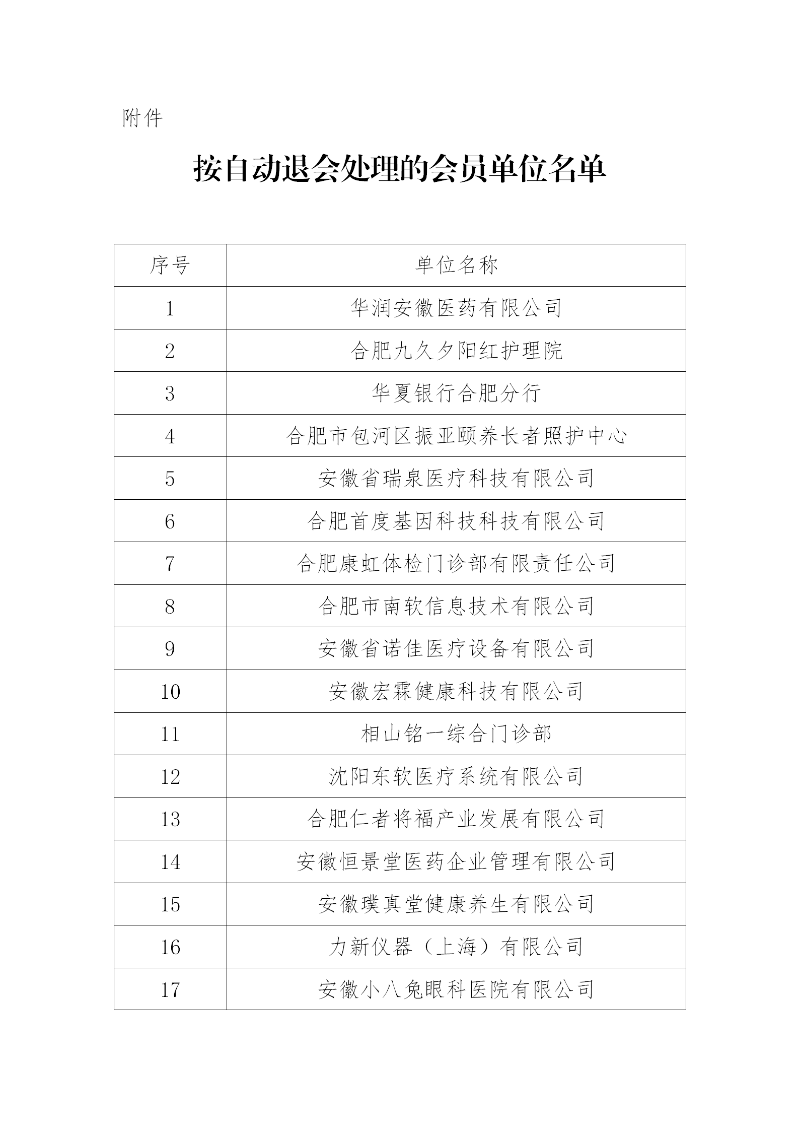 自協(xié)會成立幾年來,多家會員單位因業(yè)務(wù)轉(zhuǎn)型、結(jié)構(gòu)調(diào)整,未繳納會費,且長期不參加協(xié)會活動。根據(jù)《安徽省健康服務(wù)業(yè)協(xié)會》第三章十二條的規(guī)定,“會員如果1年不交納會費或不參加本協(xié)會活動,視為自動退會”,該38家單位視為自動退會,F(xiàn)對自動退會名單進行公示,公示期為2020年5月18日至2020年5月25日。