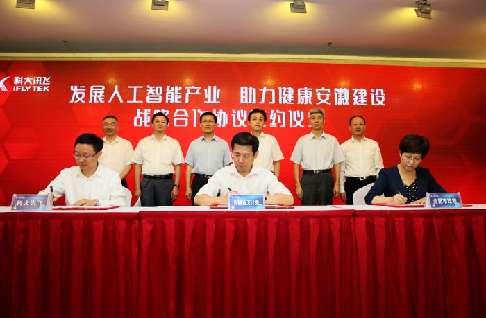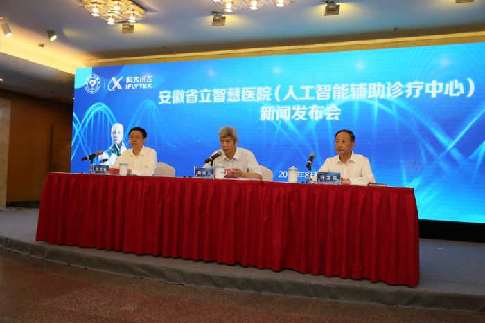 8月20日上午,安徽省立智慧醫(yī)院(人工智能輔助診療中心)揭牌儀式暨新聞發(fā)布會(huì)在安徽省立醫(yī)院隆重舉行。國家衛(wèi)生計(jì)生委副主任金小桃、安徽省副省長(zhǎng)謝廣祥出席揭牌儀式并講話。省衛(wèi)生計(jì)生委主任于德志,合肥市市長(zhǎng)凌云,科大訊飛董事長(zhǎng)劉慶峰出席儀式并簽署戰(zhàn)略合作協(xié)議。省政府副秘書長(zhǎng)章石生主持揭牌儀式,省衛(wèi)生計(jì)生委副主任高俊文主持新聞發(fā)布會(huì),省立醫(yī)院黨委書記劉同柱、院長(zhǎng)許戈良等出席。