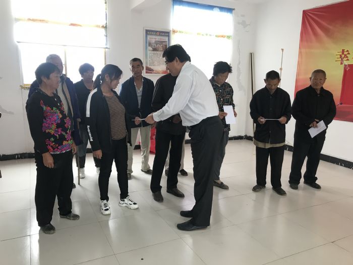 隨后,進(jìn)行了捐贈儀式,劉愛國會長和余華伍秘書長向14戶貧困戶發(fā)放了慰問金和慰問物資。