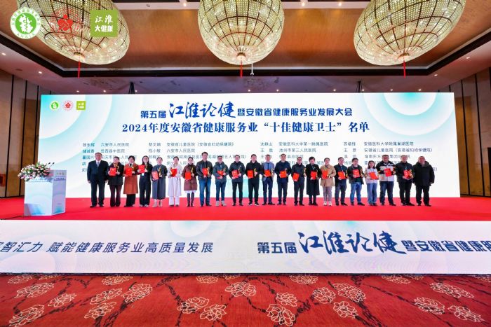 2024年度安徽省健康服務(wù)業(yè)“十佳”:2024年安徽省健康服務(wù)業(yè)“十佳創(chuàng)新單位”是阜陽市第五人民醫(yī)院、 合肥迪安醫(yī)學(xué)檢驗實(shí)驗室有限公司、合肥華安腦科醫(yī)院、合肥市口腔醫(yī)院、淮南新華醫(yī)療集團(tuán)新華醫(yī)院、靈璧縣人民醫(yī)院、六安市人民醫(yī)院、宣城市人民醫(yī)院、宣城市中心醫(yī)院、中國科學(xué)技術(shù)大學(xué)附屬第一醫(yī)院(安徽省立醫(yī)院)(按單位名稱拼音排序);2024 年安徽省健康服務(wù)業(yè)“十佳創(chuàng)新人物”是班文明、胡劍輝、潘志剛、宋坤、王啟偉、楊培剛、尹大龍、張良、張文俊、趙曙光(按姓氏拼音排序);2024年度安徽省健康服務(wù)業(yè)“十佳健康衛(wèi)士”是陳東輝、蔡文娟、儲誠香、程小敏、董國興、郭梅寶、胡龍、廖玲、閔旭紅、申才佳、沈群山、蘇增鋒、王勝、王彥、王如生、吳凱、楊旻、楊明帆、章方全、周志慶(按姓氏拼音排序)。