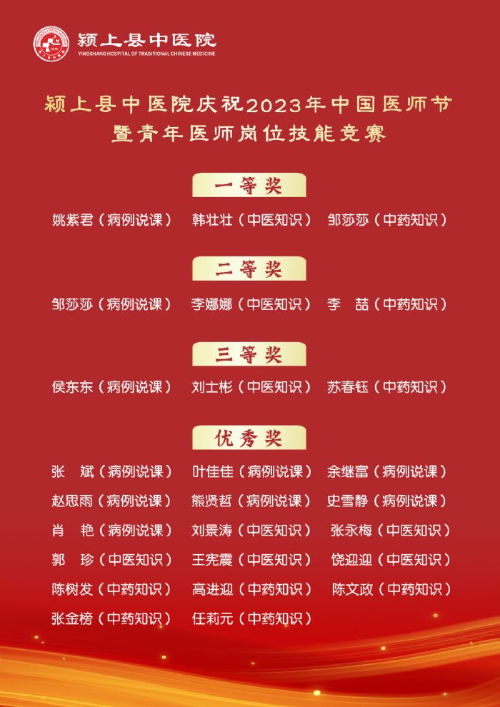 以賽促學提水平,青年醫(yī)師展風采。在第六個中國醫(yī)師節(jié)到來之際,8月16日下午,潁上縣中醫(yī)院舉行慶祝中國醫(yī)師節(jié)暨青年醫(yī)師崗位技能競賽。