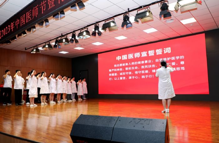 任世龍在致辭中,向辛勤工作在全院各個崗位的廣大醫(yī)師致以節(jié)日的問候。他希望全院廣大醫(yī)務工作者要不忘醫(yī)者初心,積極進取、刻苦鉆研;常修醫(yī)者仁心,甘于吃苦、樂于奉獻;保持醫(yī)者恒心,孜孜不倦、奮發(fā)有為;扛得住壓力、守得住操守,恪守住承諾,不斷提高自身綜合素質和業(yè)務本領,滿足群眾日益增長的健康需求。