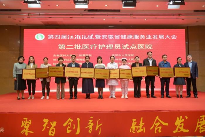 大會(huì)進(jìn)行第二批醫(yī)療護(hù)理員試點(diǎn)醫(yī)院授牌儀式。安徽省健康服務(wù)業(yè)協(xié)會(huì)聯(lián)合安徽省護(hù)理學(xué)會(huì)在全省部分二級(jí)及以上醫(yī)院開(kāi)展第二批醫(yī)療護(hù)理員試點(diǎn)工作,試點(diǎn)工作委托安徽省醫(yī)管健康產(chǎn)業(yè)集團(tuán)組織實(shí)施,第二批醫(yī)療護(hù)理員試點(diǎn)醫(yī)院是安徽醫(yī)科大學(xué)第二附屬醫(yī)院、蚌埠醫(yī)學(xué)院第一附屬醫(yī)院、皖南醫(yī)學(xué)院第二附屬醫(yī)院、安徽省兒童醫(yī)院、安徽醫(yī)科大學(xué)附屬巢湖醫(yī)院、合肥市第一人民醫(yī)院、六安市人民醫(yī)院、阜陽(yáng)市人民醫(yī)院、滁州市第一人民醫(yī)院、合肥市骨科醫(yī)院、合肥市第八人民醫(yī)院、明光市人民醫(yī)院、界首市人民醫(yī)院、安徽省第二人民醫(yī)院靈璧醫(yī)院。