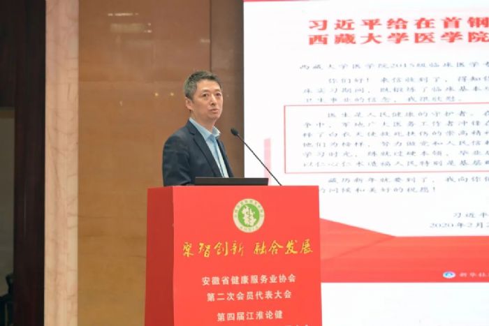 3月12日,由安徽省健康服務(wù)業(yè)協(xié)會(huì)主辦的“第四屆江淮論健暨安徽健康服務(wù)業(yè)發(fā)展大會(huì)”在合肥舉行,來(lái)自全省健康服務(wù)業(yè)領(lǐng)域的專(zhuān)家學(xué)者齊聚合肥,以“聚智創(chuàng)新 融合發(fā)展”為主題,聚焦健康服務(wù)業(yè)領(lǐng)域內(nèi)熱點(diǎn)問(wèn)題,著眼長(zhǎng)三角一體化發(fā)展,探索安徽健康服務(wù)業(yè)發(fā)展路徑。與會(huì)人員共計(jì)400余人,大會(huì)由協(xié)會(huì)副會(huì)長(zhǎng)、中科大附一院(安徽省立醫(yī)院)黨委副書(shū)記劉軍主持。
