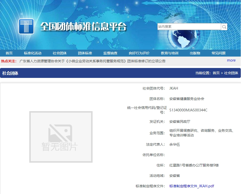 近日,安徽省健康服務(wù)業(yè)協(xié)會(huì)制定并發(fā)布《安徽省健康服務(wù)業(yè)協(xié)會(huì)團(tuán)體標(biāo)準(zhǔn)管理辦法(試行)》,并向全國團(tuán)體標(biāo)準(zhǔn)信息平臺(tái)申報(bào)公示,在規(guī)定的30天公示期沒有異議,正式成為團(tuán)體標(biāo)準(zhǔn)信息平臺(tái)團(tuán)體用戶,協(xié)會(huì)社會(huì)團(tuán)體代號(hào):JKAH,即日起可以在平臺(tái)上發(fā)布團(tuán)體動(dòng)態(tài)、公布團(tuán)體標(biāo)準(zhǔn)等。