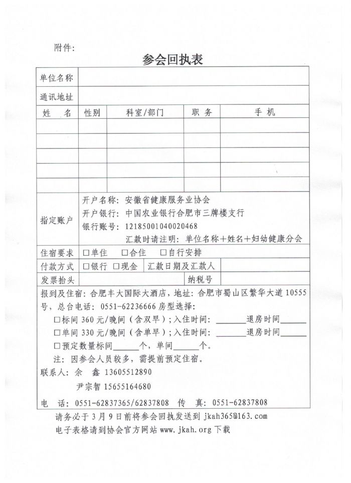 附件:婦幼健康分會(huì)參會(huì)回執(zhí)表