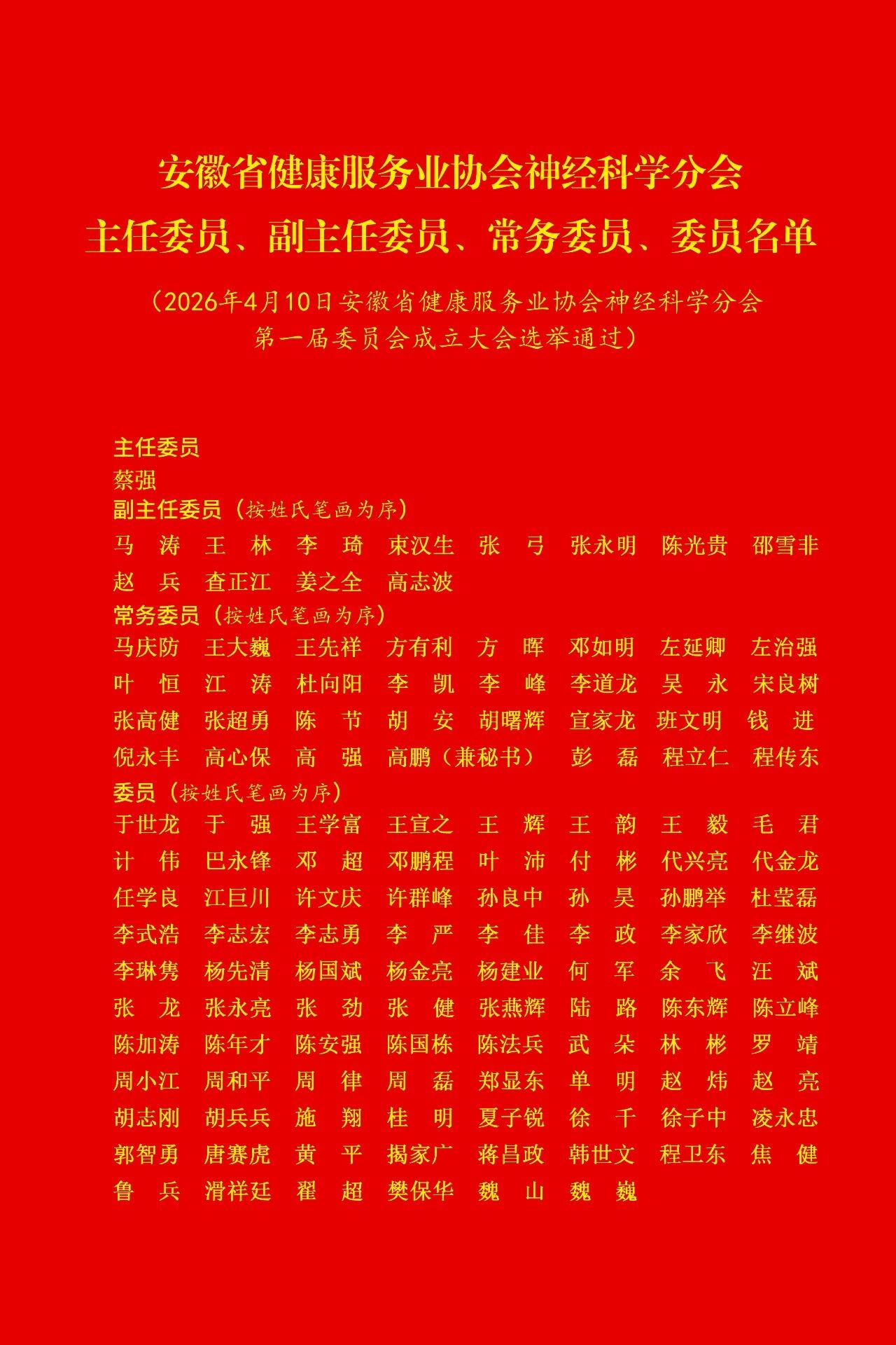 春日廬州,惠風(fēng)和暢,來(lái)自全省各地的神經(jīng)科學(xué)健康領(lǐng)域?qū)<引R聚合肥,共同見(jiàn)證安徽省神經(jīng)科學(xué)健康領(lǐng)域一個(gè)全新產(chǎn)學(xué)研平臺(tái)的誕生。2026年4月10日下午,安徽省健康服務(wù)業(yè)協(xié)會(huì)神經(jīng)科學(xué)分會(huì)成立大會(huì)在合肥隆重召開(kāi)。省健康服務(wù)業(yè)協(xié)會(huì)監(jiān)事長(zhǎng)、安徽衛(wèi)生健康職業(yè)學(xué)院紀(jì)委書(shū)記王延照,協(xié)會(huì)副秘書(shū)長(zhǎng)于澍民、余鑫等出席大會(huì),來(lái)自全省各級(jí)醫(yī)療機(jī)構(gòu)的候選委員100多位專家參加了大會(huì),大會(huì)由協(xié)會(huì)副會(huì)長(zhǎng)兼秘書(shū)長(zhǎng)余華伍主持。